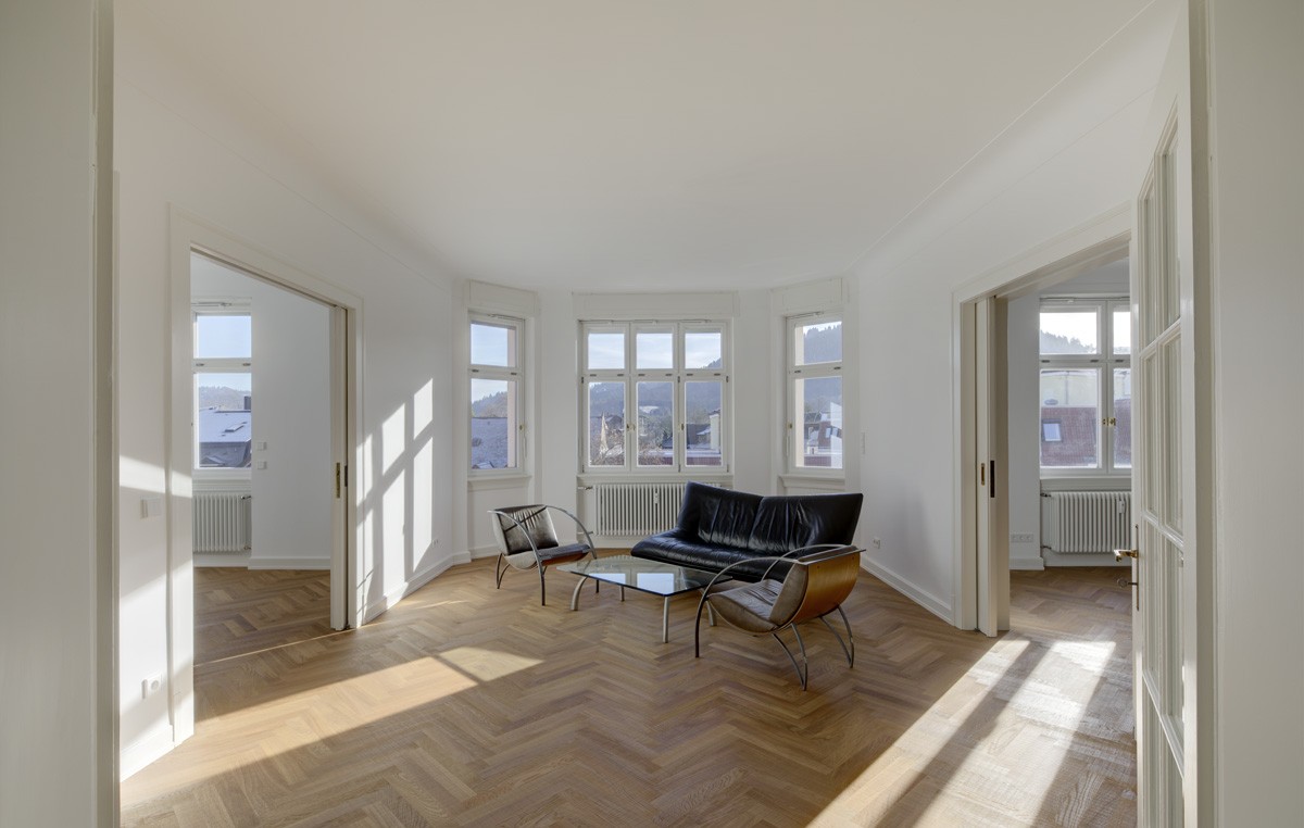In der Alten Universität in Freiburg wurden mehrere Sanierungs- und Umbaumaßnahmen umgesetzt. Unter anderem gab es in einem der Treppenhäuser ein neues Beleuchtungskonzept.